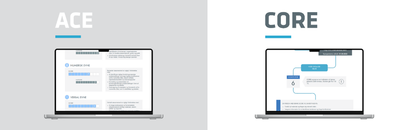 Både ACE og CORE giver begge præcis vurderinger af testtagers kognitive evner. CORE er god, hvis man ønsker en præcis vurdering på jobsucces. Ønsker man derimod en meget præcis vurdering, anbefaler vi at bruge ACE.